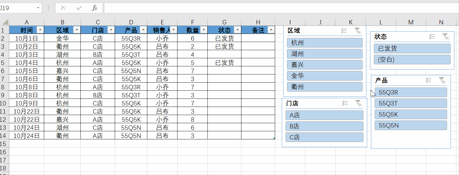 然后就有對應的切片器生成,簡單的調(diào)整格式,就能達到使用的效果。