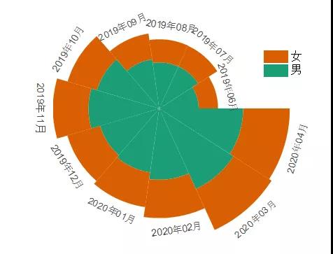 示例數(shù)據(jù)為本微信信息常讀用戶的情況,按性別分類。