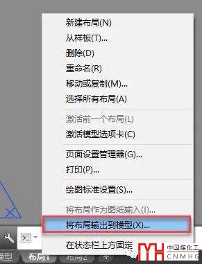 還可以利用命令將整個布局中圖紙空間和視口內(nèi)圖形一起轉(zhuǎn)換成模型空間的一張圖紙,在布局標(biāo)簽里就提供了這樣的命令。