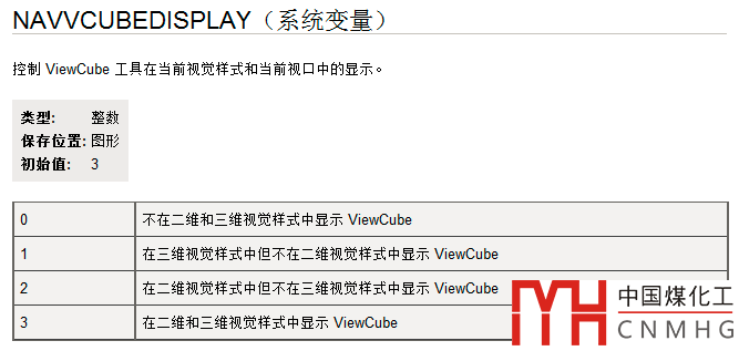 變量名是:NAVVCUBEDISPLAY,變量名有點長,NAV是導航單詞的簡寫,VCUBE是VIEWCUBE的簡寫,DISPLAY是顯示,英文好的話也不難記。變量可以設置為0、1、2、3,分別對應上圖中設置VIEWCUBE的兩個選項都不勾選,勾選一個和都勾選的幾種狀態(tài),具體對應情況如下。