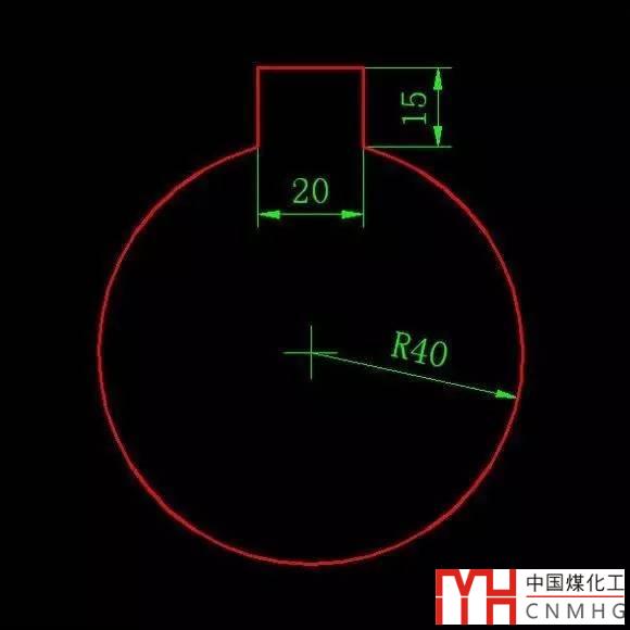 這張圖給的條件比較充分,畫起來(lái)比較簡(jiǎn)單,按照正常思路,畫一個(gè)半徑40的圓,畫一條豎直的半徑,左右各偏移10,然后修剪,然后利用交點(diǎn)畫上面三條直線段。