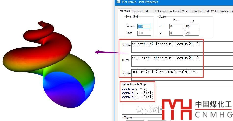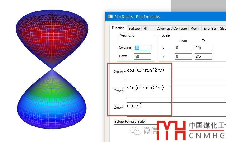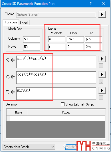 選擇New 3D Parametric Plot,打開(kāi)Creat 3D Parametric Function Plot對(duì)話框