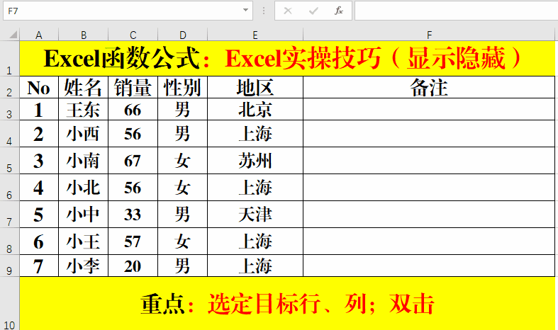 三、快速取消隱藏行、列。
