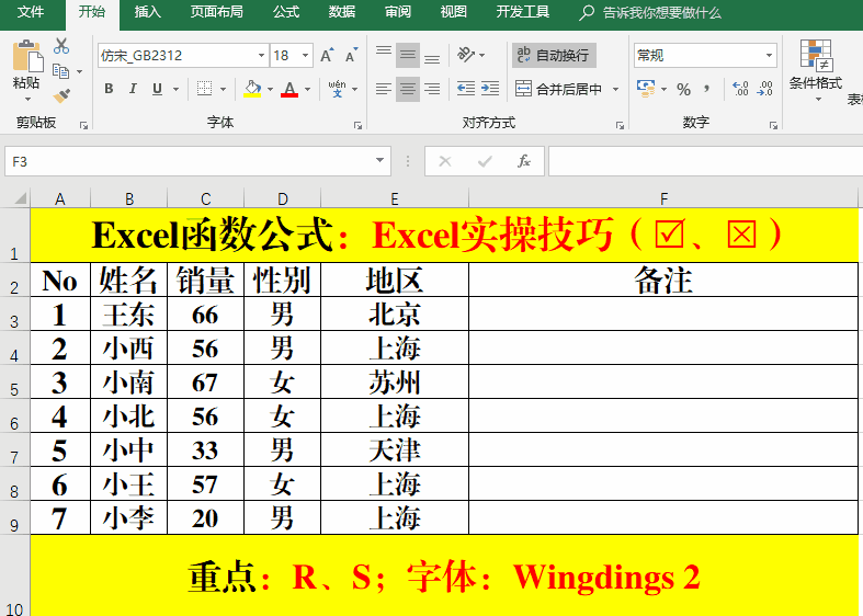 2、設置目標單元格的字體為:Wingdings 2。
