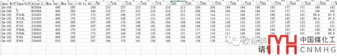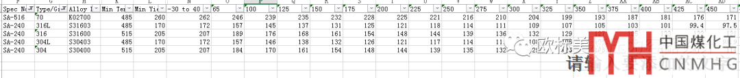 為方便自定義材料再貼兩張ASME常用板材和鍛件高溫屈服值