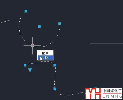 不同類型夾點拉伸會產(chǎn)生不同的效果,比如拉伸直線的端點會改變端點位置,拉伸直線中間的夾點會移動直線,拉伸圓弧的圓心夾點是移動圓弧等等。