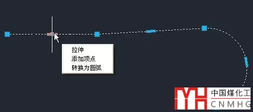 在CAD高版本,夾點編輯功能進一步加強了,當選中多段線、樣條曲線或圓弧的后,光標停留在某個夾點處,就會彈出一個快捷菜單,如下圖所示。