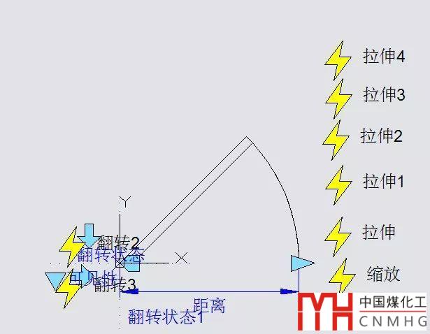動態(tài)塊的夾點就更加多樣化了,不同的動作都有不同形狀的夾點,此外還有可見性、查詢列表的夾點,這里簡單地看幾種夾點的形式吧。