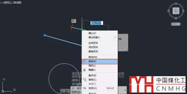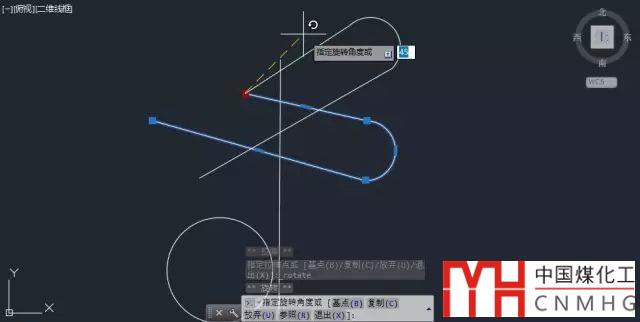 拖動光標,可以看到圖形會繞著選中的夾點旋轉(zhuǎn),此時可直接輸入旋轉(zhuǎn)角度或在圖中拾取一個旋轉(zhuǎn)角度,如圖所示。