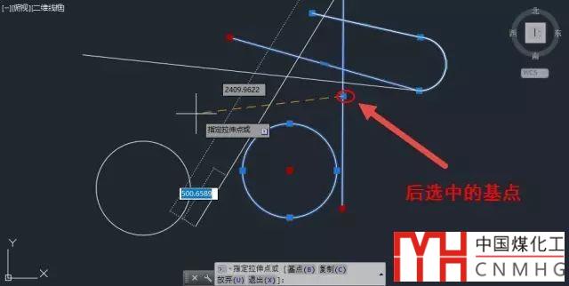 拉伸夾點時還可輸入選項來設置拉伸的基點(B)或是否復制(C)選定的圖形。