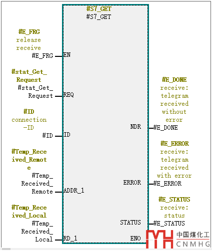 接下來進(jìn)行軟件編程。采用FB14 "GET"指令獲取遠(yuǎn)程PLC(CPU 317-PN/DP)的數(shù)據(jù),程序塊如下圖: