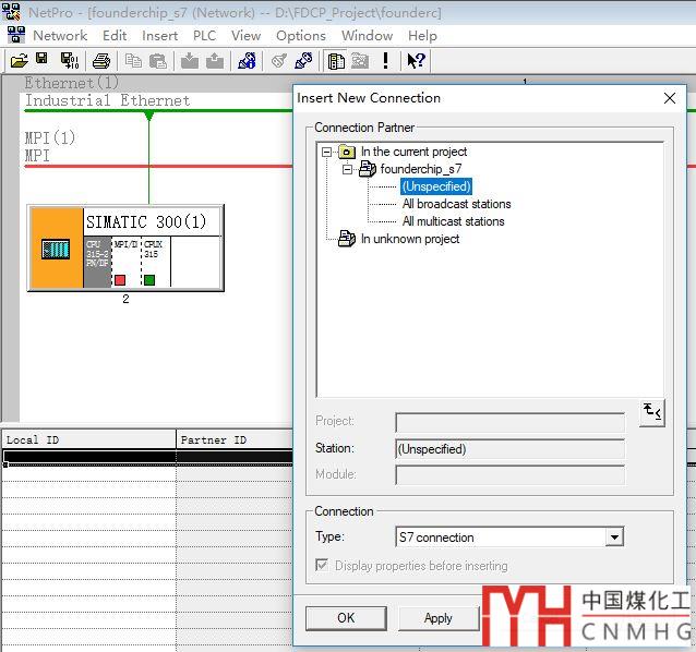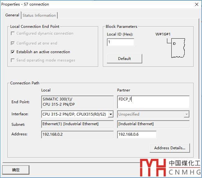 雙擊新添加的S7連接(S7 connection),打開屬性對(duì)話框,在【通信路徑(Connection Path)】中添加通信伙伴的IP地址,如下圖: