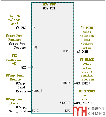 采用FB15 "PUT"指令將數(shù)據(jù)寫入遠(yuǎn)程PLC,程序塊如下圖: