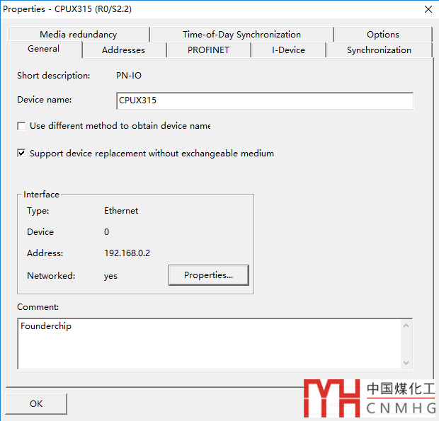 首先對(duì)CPU 315-2PN/DP進(jìn)行硬件組態(tài),設(shè)置IP地址:192.168.0.2,如下圖: