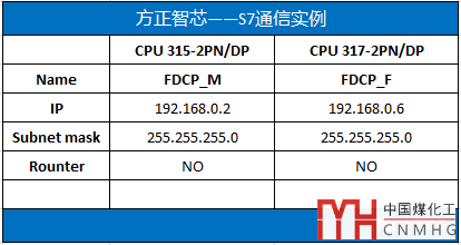 本文使用數(shù)據(jù)交換指令,硬件平臺(tái)是CPU 315-2PN/DP和CPU 317-2PN/DP,用網(wǎng)線將兩個(gè)CPU的PN口相連。采用S7單邊通信的方式,僅在CPU 315-2PN/DP一側(cè)進(jìn)行硬件組態(tài)和軟件編程。兩個(gè)站點(diǎn)的IP參數(shù)如下: