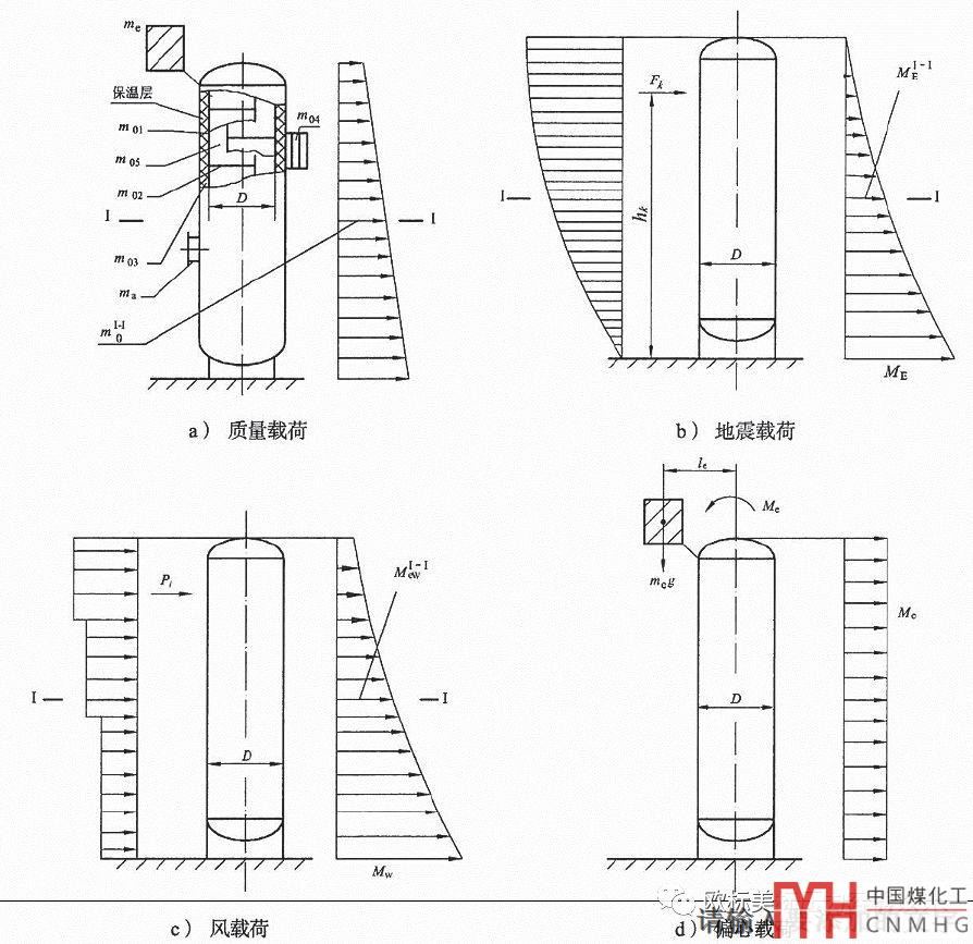 裙座自支撐的塔式容器的計(jì)算模型是一端固支的懸臂梁;帶導(dǎo)向支撐的塔式容器的計(jì)算模型是一端固支,一個(gè)或多個(gè)簡(jiǎn)支點(diǎn)帶懸臂的梁。可能有人會(huì)有不同意見(jiàn),但是既然正常塔式容器的計(jì)算模型是以一端固支的懸臂梁為原型,那么帶導(dǎo)向支撐的簡(jiǎn)化為一端固支,一端簡(jiǎn)支的帶懸臂的梁模型就沒(méi)有問(wèn)題。對(duì)模型等簡(jiǎn)化問(wèn)題不求關(guān)照但也不能用不同的標(biāo)準(zhǔn)看待。還有人會(huì)說(shuō)你只考慮了靜態(tài)的載荷并未考慮塔器振動(dòng)的動(dòng)態(tài)載荷。無(wú)論哪國(guó)的塔器標(biāo)準(zhǔn)和資料對(duì)于動(dòng)態(tài)的載荷也都是以靜態(tài)的方式來(lái)考慮的。本著做工程的務(wù)實(shí)態(tài)度用同標(biāo)準(zhǔn)和參考資料相同的處理方式是可以接受的。