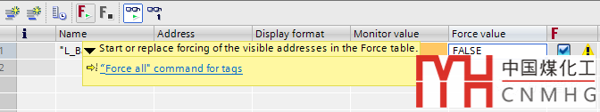 在“強制值(Force Value)”中輸入需要強制的值(TRUE or FALSE),點擊“啟動強制”圖標,系統(tǒng)會出現(xiàn)如下對話框: