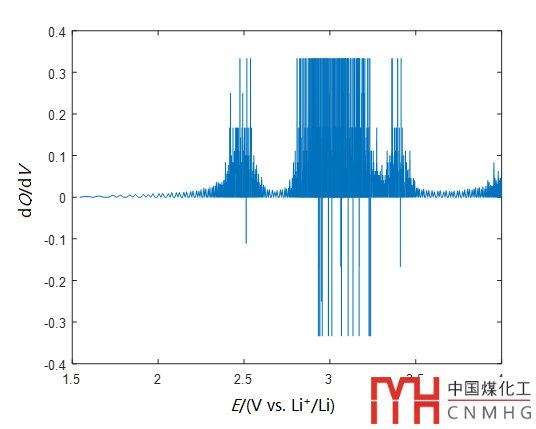 不少同學(xué)參考這些文獻(xiàn)方法,試圖得到類(lèi)似的微分容量曲線(xiàn),但是,實(shí)際上會(huì)遇到很多困難。要么不知道怎么得到,要么在利用Origin繪圖軟件進(jìn)行微分處理時(shí),得到的一定是類(lèi)似下圖的奇怪結(jié)果。