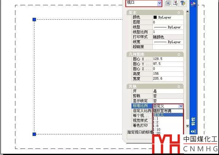 4、單擊確定,關閉此對話框。設置好后可以看看設置視口比例、打印比例時的效果,如下圖所示。