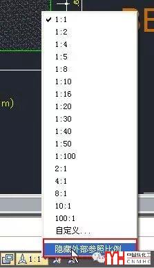 在低版本中沒有類似的功能,如果圖形異常大,打開和操作都比較慢的話,我們可以自己檢查一下。在狀態(tài)欄底部點注釋性比例按鈕,顯示注釋列表,并取消勾選“隱藏外部參照比例”,如下圖所示。