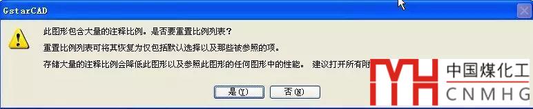 在編輯比例列表對話框中有一個重置按鈕,它的作用是將比例列表恢復到默認的狀態(tài)。重置按鈕在常規(guī)狀態(tài)并不太重要,我們刪錯了某個比例重新添加一下也并不麻煩。但在AUTOCAD提供了注釋性功能后,有不少圖紙會出現(xiàn)圖紙中有過量(數(shù)量有時會達到十幾萬),這種圖紙圖形看上去不多,但圖紙?zhí)貏e大,打開和操作都非常困難,比如曾有圖紙23MB,刪除注釋性比例后就剩4百多K。在CAD高版本打開此類圖紙時會彈出對話框,提示圖紙中有大量注釋性比例,是否刪除,如下圖所示。