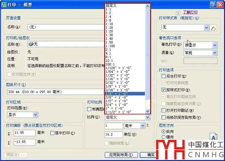 當創(chuàng)建視口和打印的時候,CAD提供了一個默認的比例列表,這個列表雖然很長,如下圖所示。
