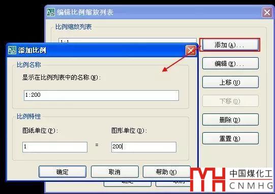 3、單擊“添加”按鈕,在彈出的“添加比例”對話框中加入我們需要的比例,如下圖所示。
