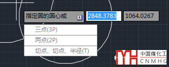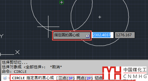 但動態(tài)輸入通常不會顯示太長,因此有時并未顯示命令的所有選項,比如執(zhí)行畫圓的命令后,在命令行會顯示幾種可選方式,但在動態(tài)輸入?yún)s只提示指定圓心點,如下圖所示。