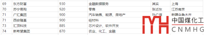 另一家上榜的能源綜合民企則是廣匯集團,以900億位列第71位,排在蘇寧易購身后。