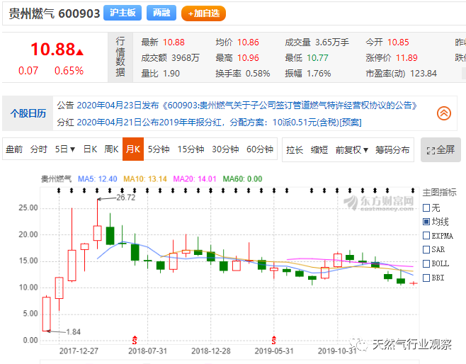4月21日,貴州燃?xì)獍l(fā)布2019年年報(bào),2019年,天然氣銷售10.89億立方米,同比增長(zhǎng)17.73%;營(yíng)業(yè)收入40.83億元,同比增長(zhǎng)13.23%;歸屬于母公司股東的凈利潤(rùn)1.91億元,同比增長(zhǎng)11.03%。