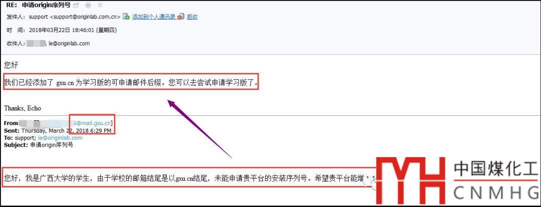 那個(gè)同學(xué)就給OriginLab官方寫了郵件說明問題,很快得到了回復(fù)。
