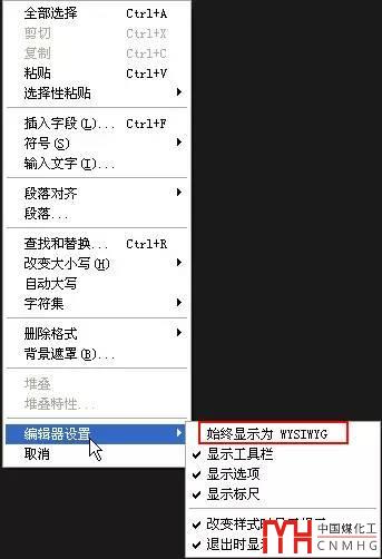 在CAD的多行文字編輯器中單擊鼠標(biāo)右鍵,在“編輯器設(shè)置”中有一條:始終顯示為WYSIWYG,如下圖所示。不少人看到這個(gè)設(shè)置后估計(jì)會(huì)問(wèn):WYSIWYG是什么意思?