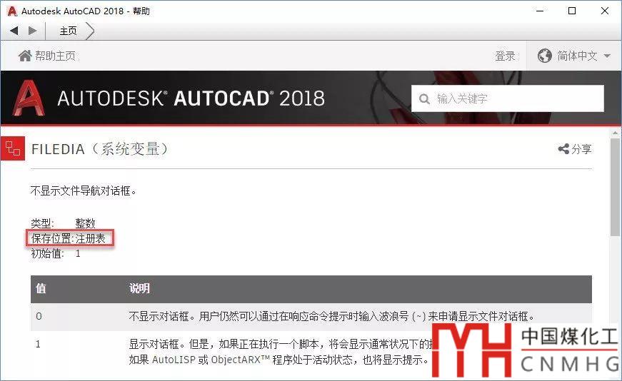 網(wǎng)上流傳的任何系統(tǒng)變量大全都不如CAD的幫助全,幫助中不僅會介紹系統(tǒng)變量的作用、類型,還會告訴我們變量是保存在注冊表還是圖紙中,比如控制填充顯示的FILLMODE是保存在圖紙中的,而控制文件對話框是否顯示的FILEDIA是保存在注冊表的,如下圖所示。