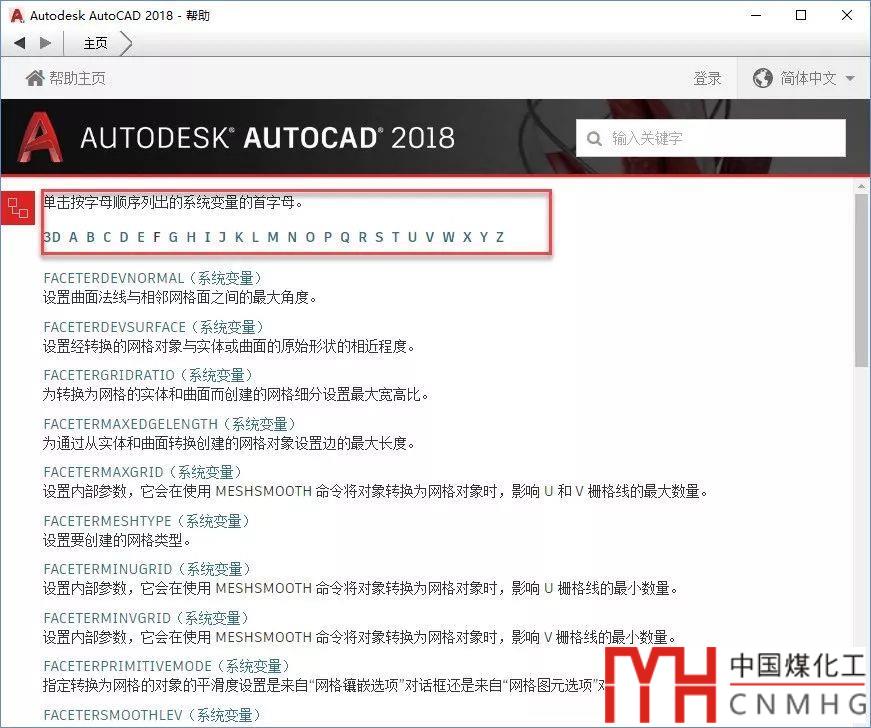 CAD的幫助中列出了所有的系統(tǒng)變量,低版本的安裝包中就包含了系統(tǒng)變量的幫助,高版本默認(rèn)是在線幫助,也可以下載脫機幫助。但命令和系統(tǒng)變量的幫助都是類似的,是以首字母作為索引的,要想找到需要的系統(tǒng)變量,必須對相關(guān)的對象或命令的英文有一定了解,同樣是填充不顯示的問題,填充的命令是HATCH,首先會去看一下H開頭的變量,找不到就需要根據(jù)英文單詞填充FILL再去找相關(guān)的變量,如下圖所示。