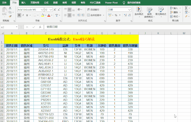 目的:快速提取銷(xiāo)售記錄表中的“銷(xiāo)售區(qū)域”和品牌。