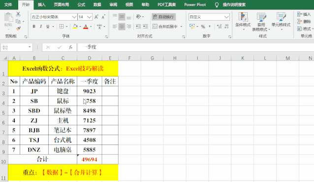 目的:將“一季度”、“二季度”、“三季度”、“四季度”的銷(xiāo)售數(shù)據(jù)匯總到一張表格中。