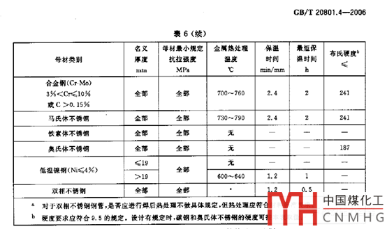 二、GB/T 20801.4-2006《壓力管道規(guī)范 工業(yè)管道 第4部分:制作與安裝》(9.5條)對于焊縫熱處理后的硬度要求上GB 50683基本一致,其對各種材料的硬度值要求見下表見最右一列。