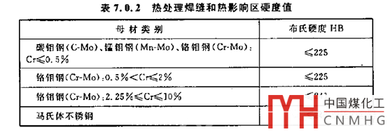 三、SH/T 3520-2015《石油化工鉻鉬鋼焊接規(guī)范》的表10.7規(guī)定了Cr-Mo鋼管道焊接接頭硬度的控制指標。標準還特別說明“設備焊接接頭的的硬度應符合設計規(guī)定“。
