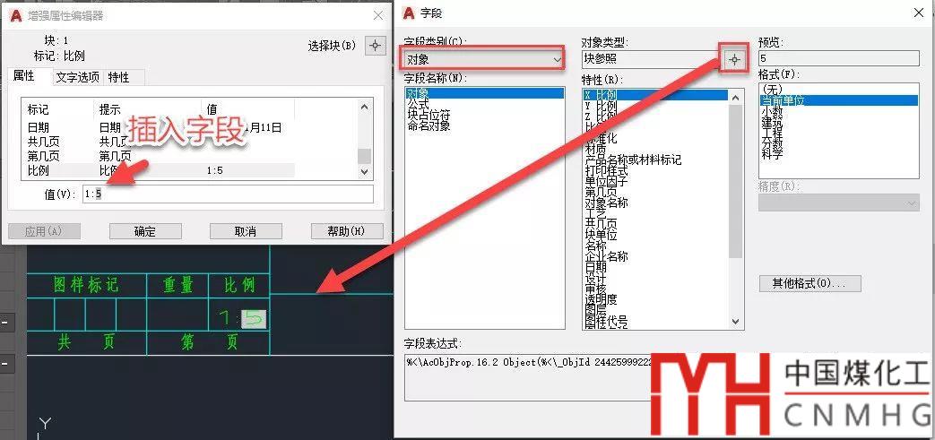 通常情況大家會1:1畫圖,然后插入圖框,圖框按照打印比例放大。如果圖框是圖塊,無論要填寫的比例是普通文字、圖塊中的文字或?qū)傩晕淖?,都可以利用字段來讀取圖塊的比例。