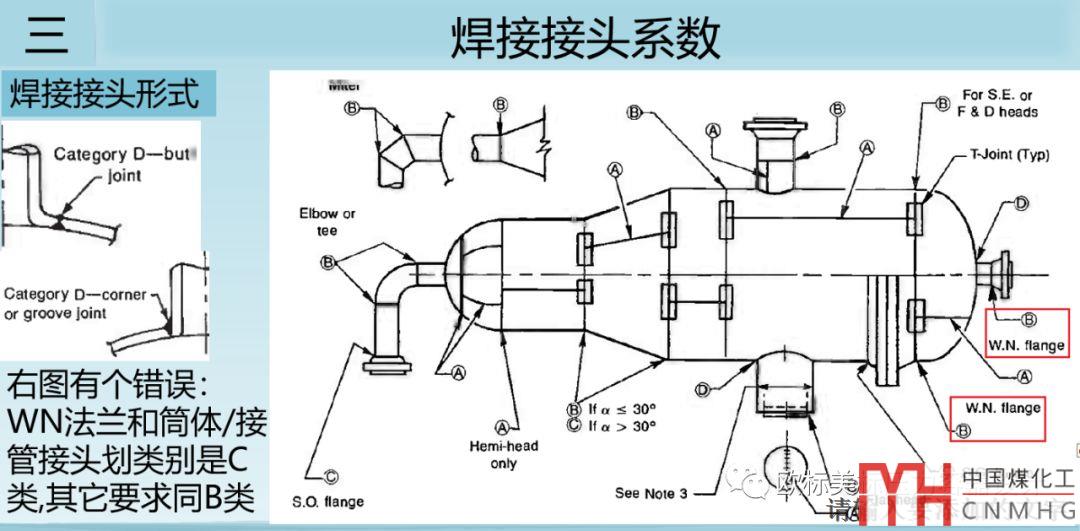 UW-3:圖中把法蘭改為WN法蘭了,這個變化是ASME被逼著澄清的一個事實。因為標(biāo)準(zhǔn)的規(guī)定一直是法蘭和筒體/接管的焊接接頭是C類,做出這個澄清可能和ASME的資料MOSS的那本指導(dǎo)手冊就把對接的劃為B類了,可能中國人也做出了貢獻(xiàn)哈。