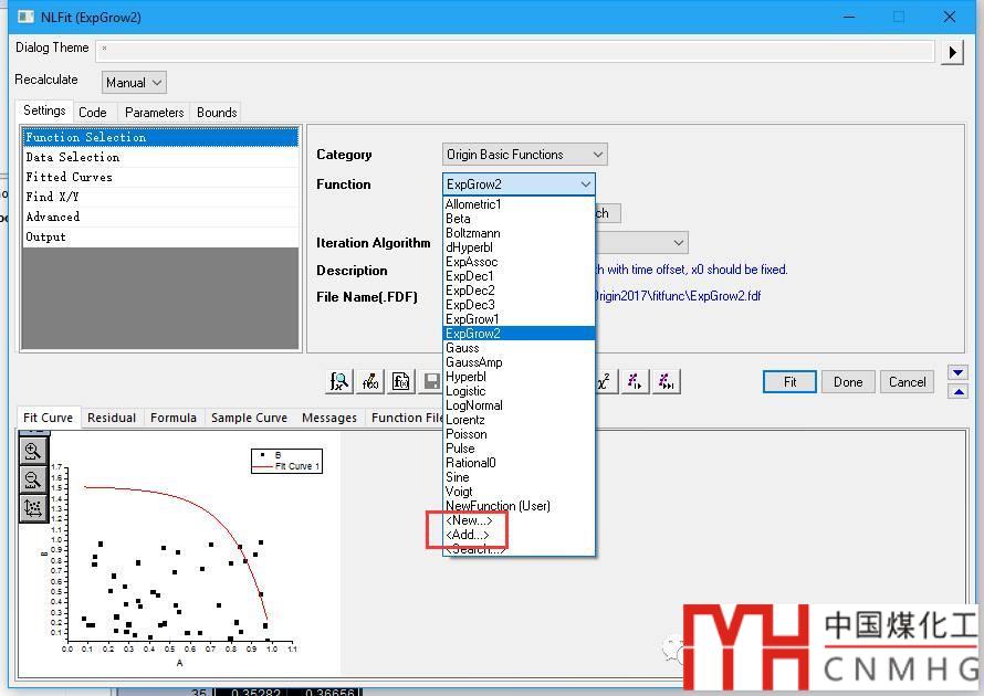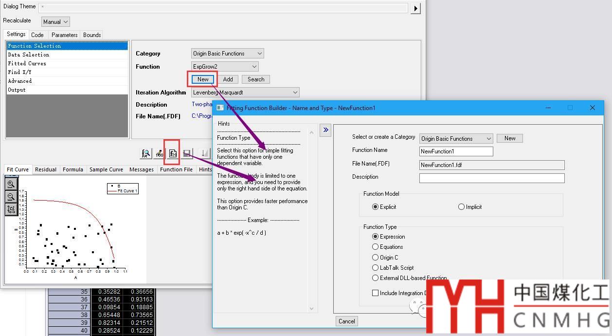Edit Fitting Function:通常是選擇與目標函數(shù)比較接近的現(xiàn)有函數(shù),對其進行修改,使之符合你的要求。