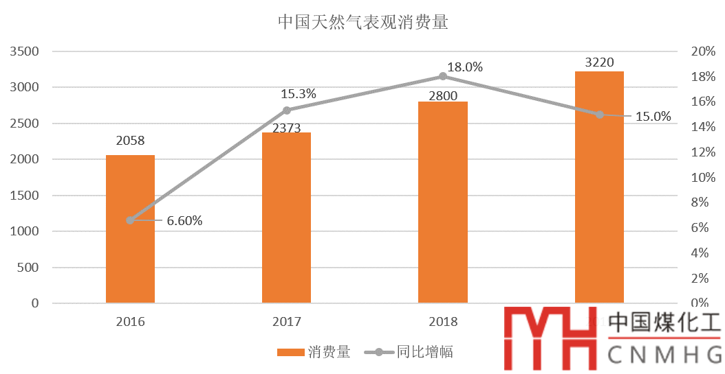 2019年,天然氣消費(fèi)增長不容樂觀,估計(jì)回歸到2017年的15%左右,消費(fèi)量在3220億方左右。