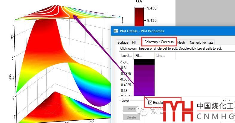 Colormap:勾選Enable Contours,點擊Line打開Contours Lines對話框,勾選Show on Major Levels Only和Link Line to Colormap,Tickness設(shè)為3