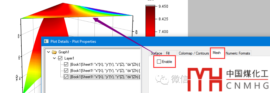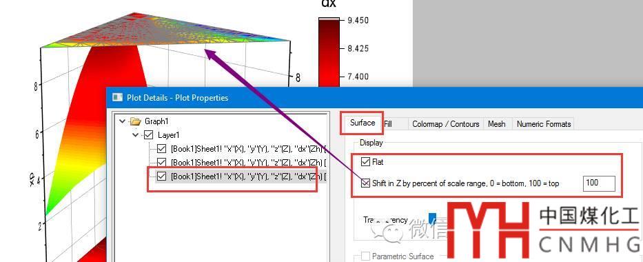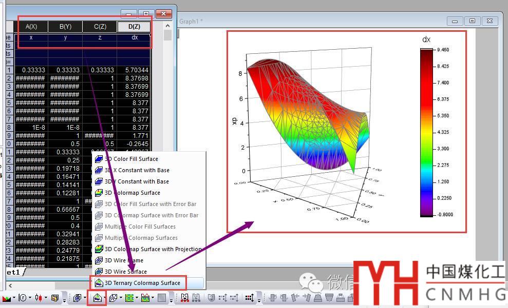 數(shù)據(jù)格式要求為XYZZ,插入3D Ternary Colormap Surface圖