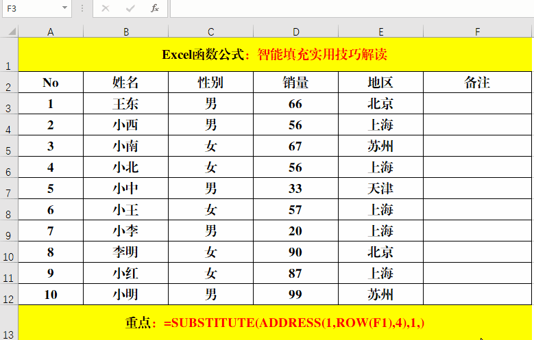 3、利用Address函數(shù)返回A1、B1、C1……等,然后用Substitute函數(shù)將“1”替換掉。