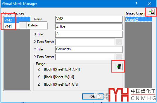Origin(Pro)提供了VM的管理工具(Tools->Virtual Matrix Manager ),可以刪除VM ,可以查看源數(shù)據(jù)以及與之相應(yīng)的三維圖形,也可以修改VM標(biāo)題等元素。