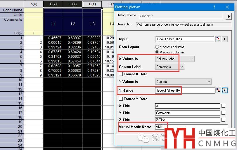 VM 并不是Matrix,而是樣子像Matrix的工作表數(shù)據(jù)。如OriginLab官網(wǎng)介紹,VM 的X/Yk可以是不等分的數(shù)據(jù),而Matrix則要求是等分的數(shù)據(jù)。