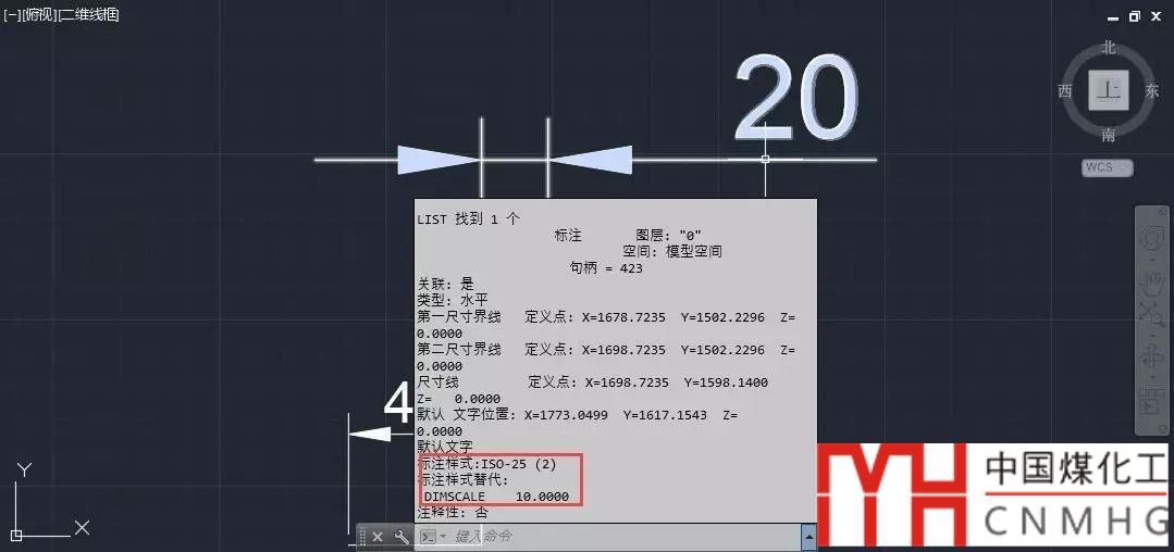 選中新創(chuàng)建的標注,輸入LI,回車,查看標注的參數(shù),我們可以看到此標注被單獨修改了哪些參數(shù),如圖所示。