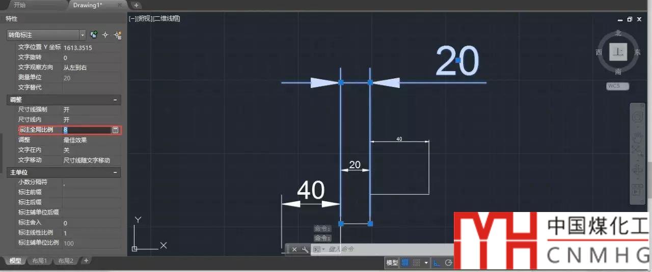 如果只需要修改某個標注的特征比例,也可以選中標注后,打開特性面板(CTRL+1),再特性面板中輸入新的標注特征比例。