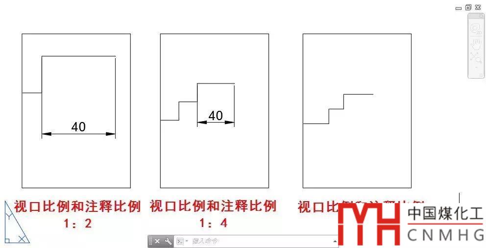 切換到布局,用VPROTS命令創(chuàng)建三個視口,視口比例和注釋比例分別設(shè)置為1:2、1:4、1:5,然后觀察標注的顯示效果。